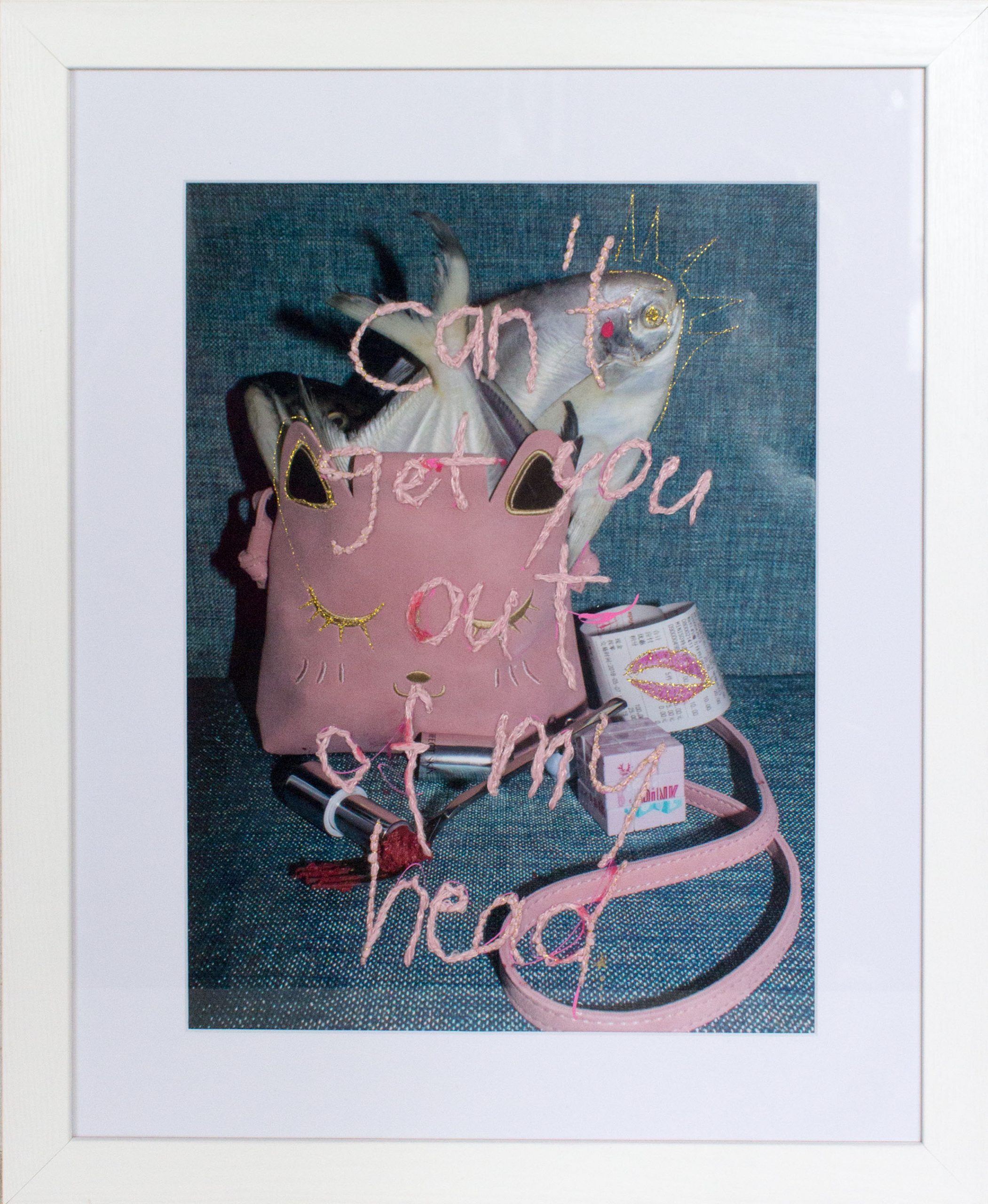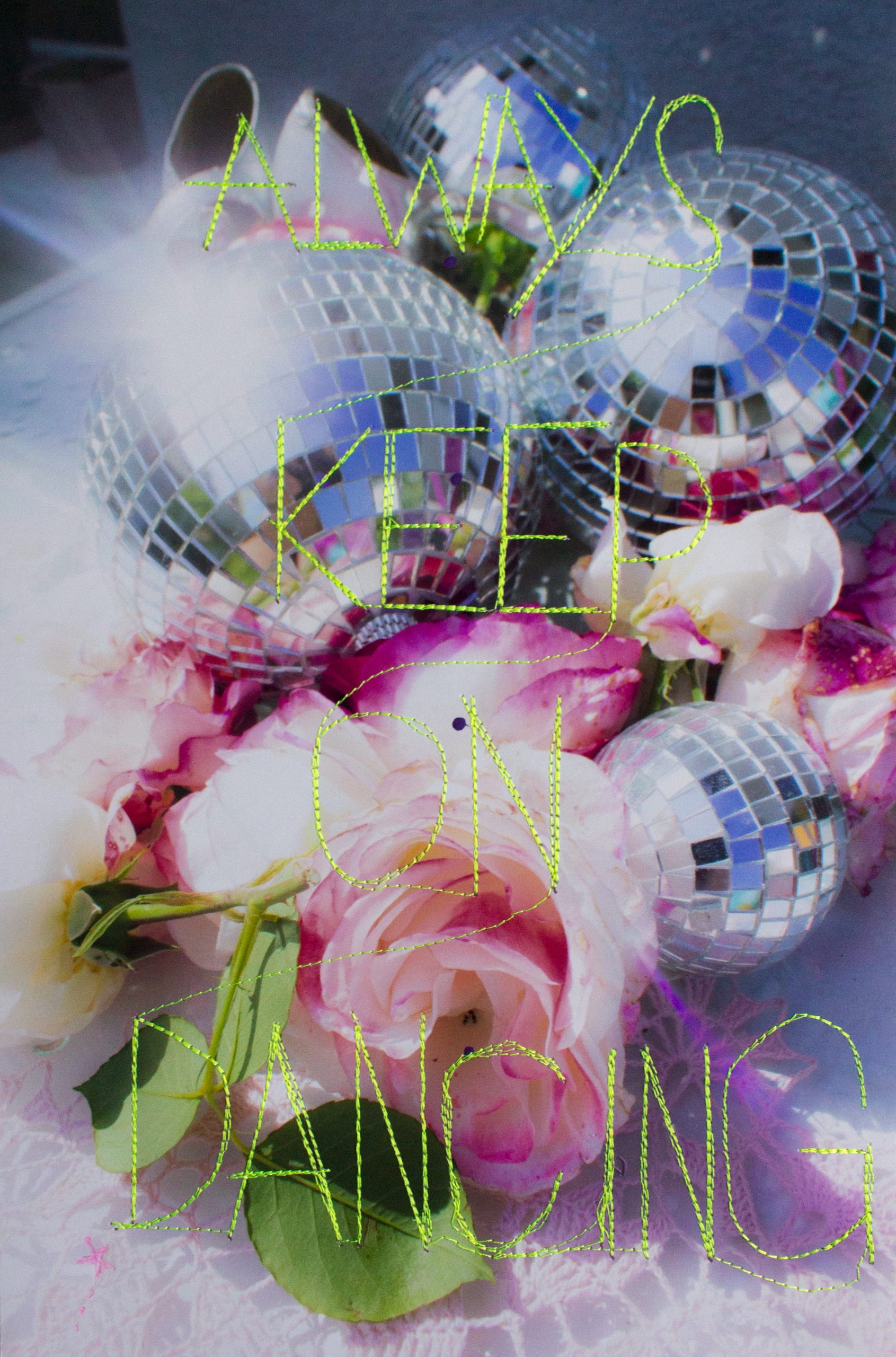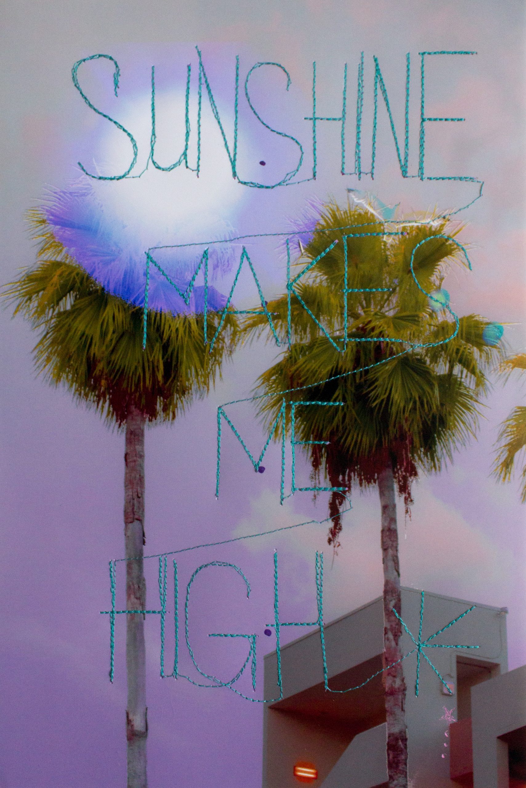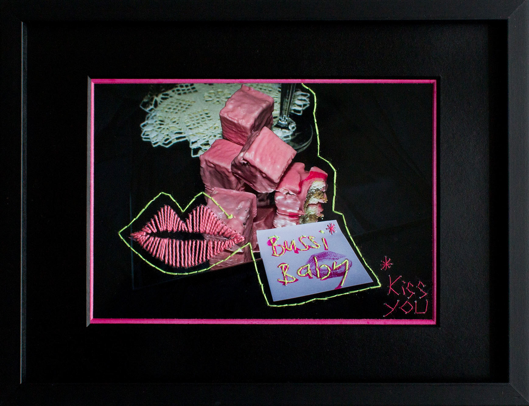 Sayings and quotes were an integral part of Eva Silberknoll’s childhood. Grandmothers and great-grandmothers provided her with the right wisdom at every opportunity. Based on this, she began to create her own sayings. Coupled with a penchant for the surreal, these witty and often dreamy images are the result. With the help of these mixed techniques of photography, screen printing and stitched elements, the artist wants to inspire the viewer to dream. Small mistakes in the print are covered up with the sewing machine, crochet doilies serve as stencils for screen printing and wool is used for embroidery.