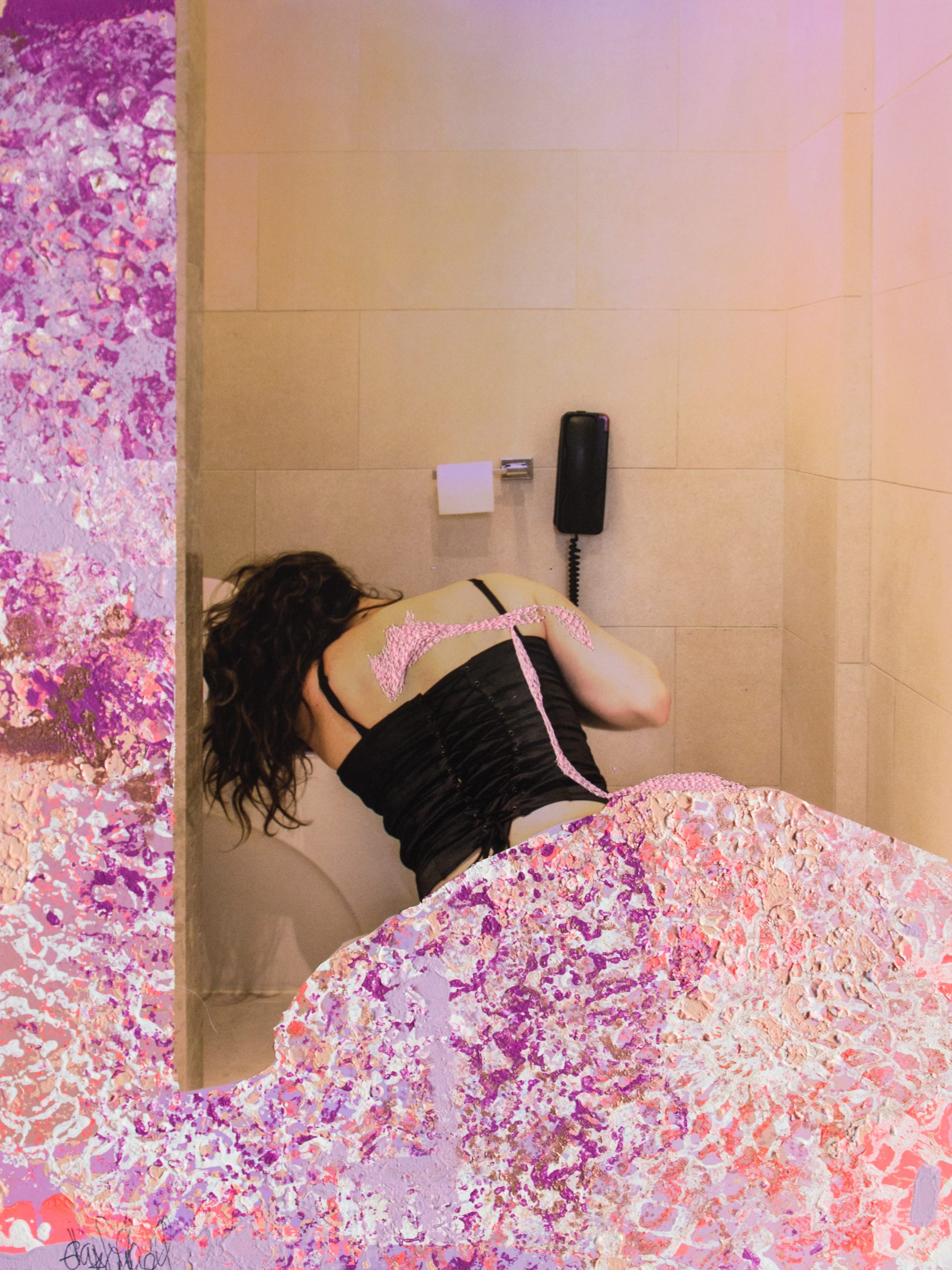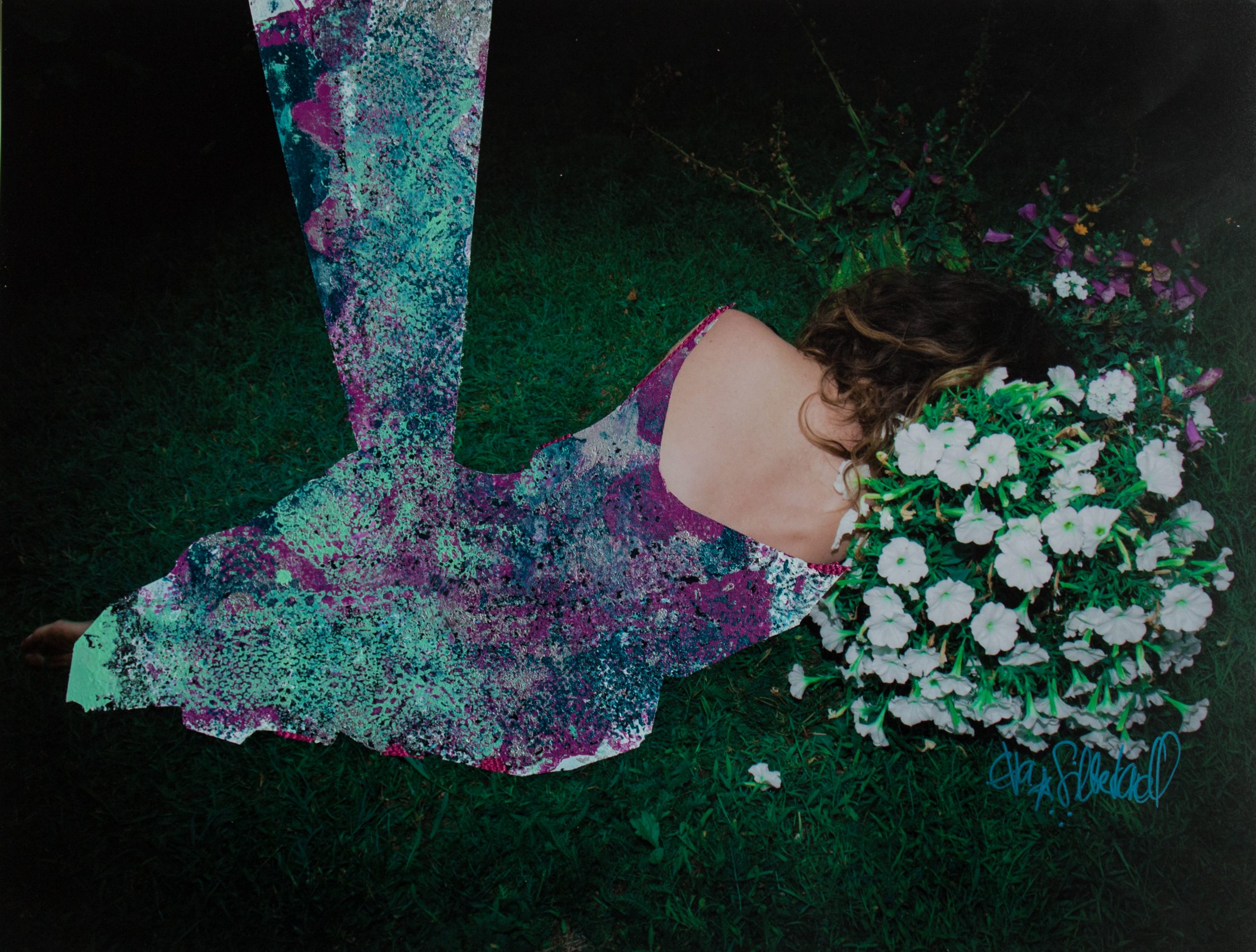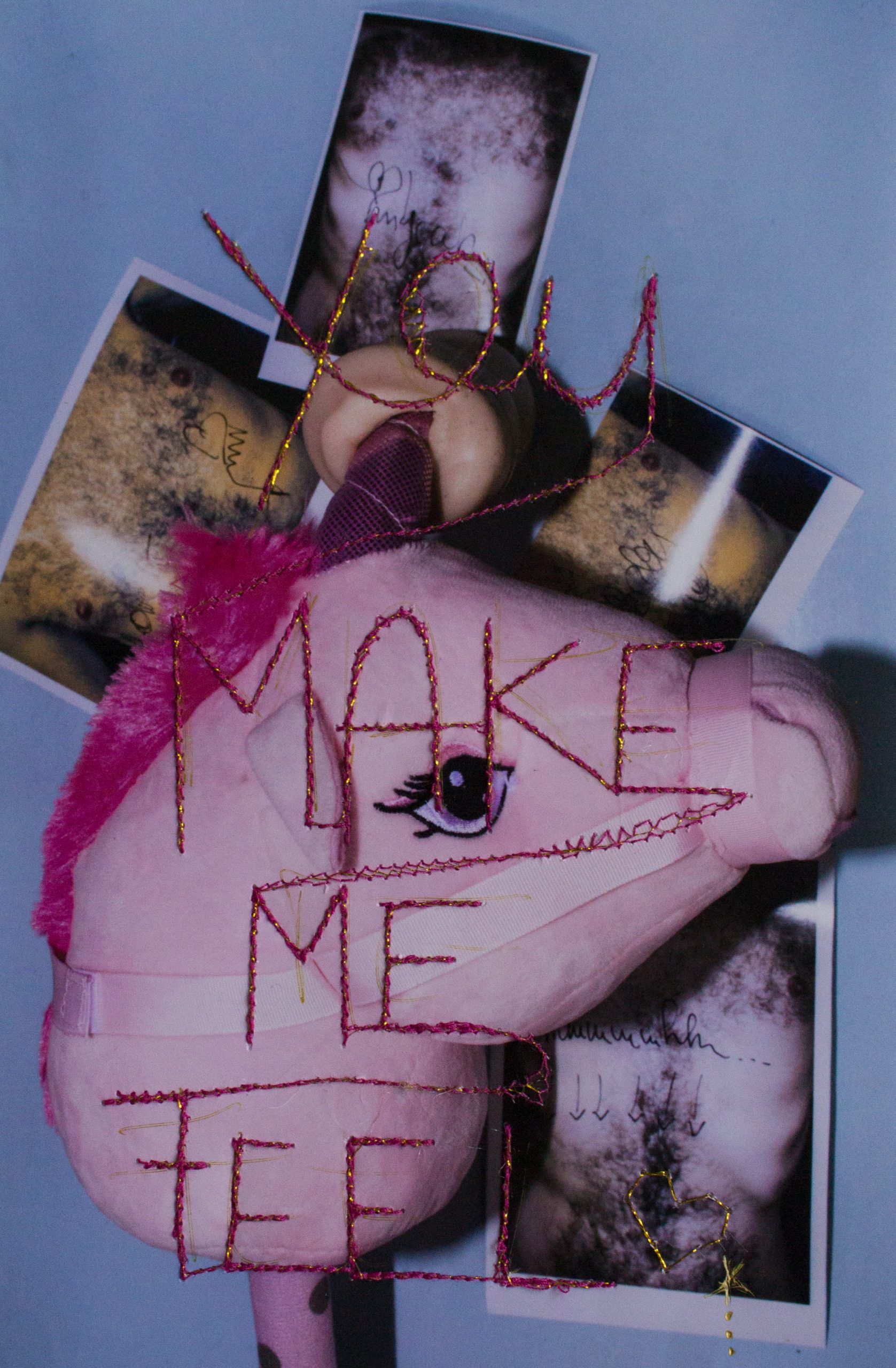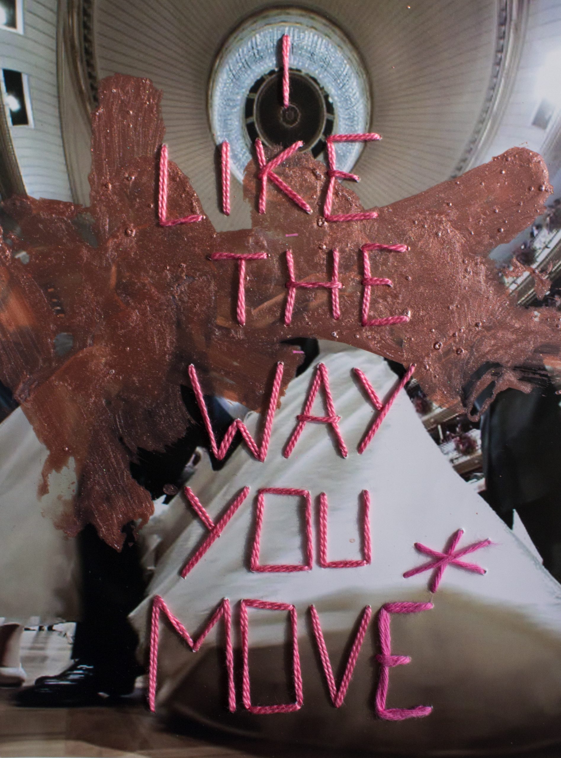 Sayings and quotes were an integral part of Eva Silberknoll’s childhood. Grandmothers and great-grandmothers provided her with the right wisdom at every opportunity. Based on this, she began to create her own sayings. Coupled with a penchant for the surreal, these witty and often dreamy images are the result. With the help of these mixed techniques of photography, screen printing and stitched elements, the artist wants to inspire the viewer to dream. Small mistakes in the print are covered up with the sewing machine, crochet doilies serve as stencils for screen printing and wool is used for embroidery.