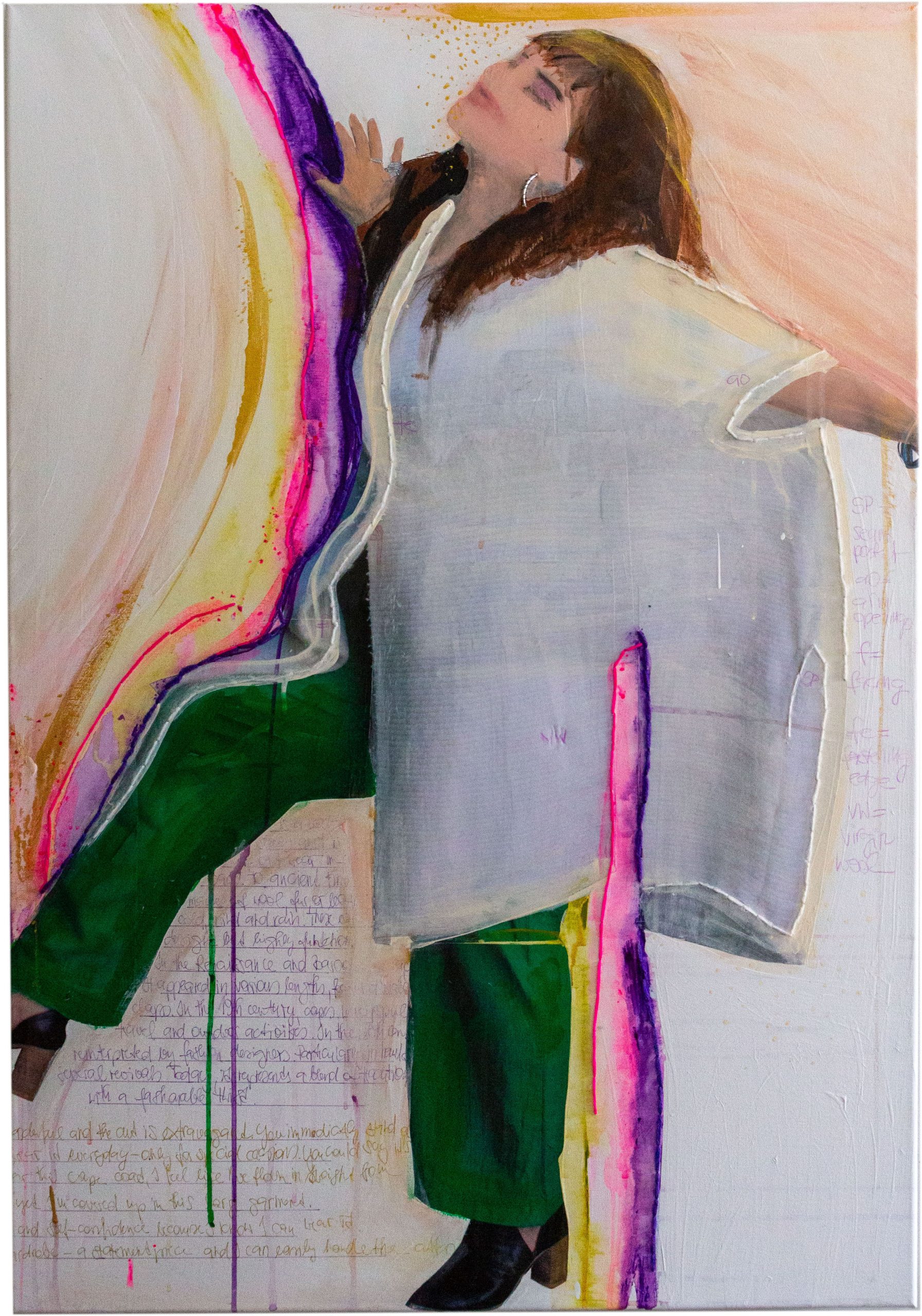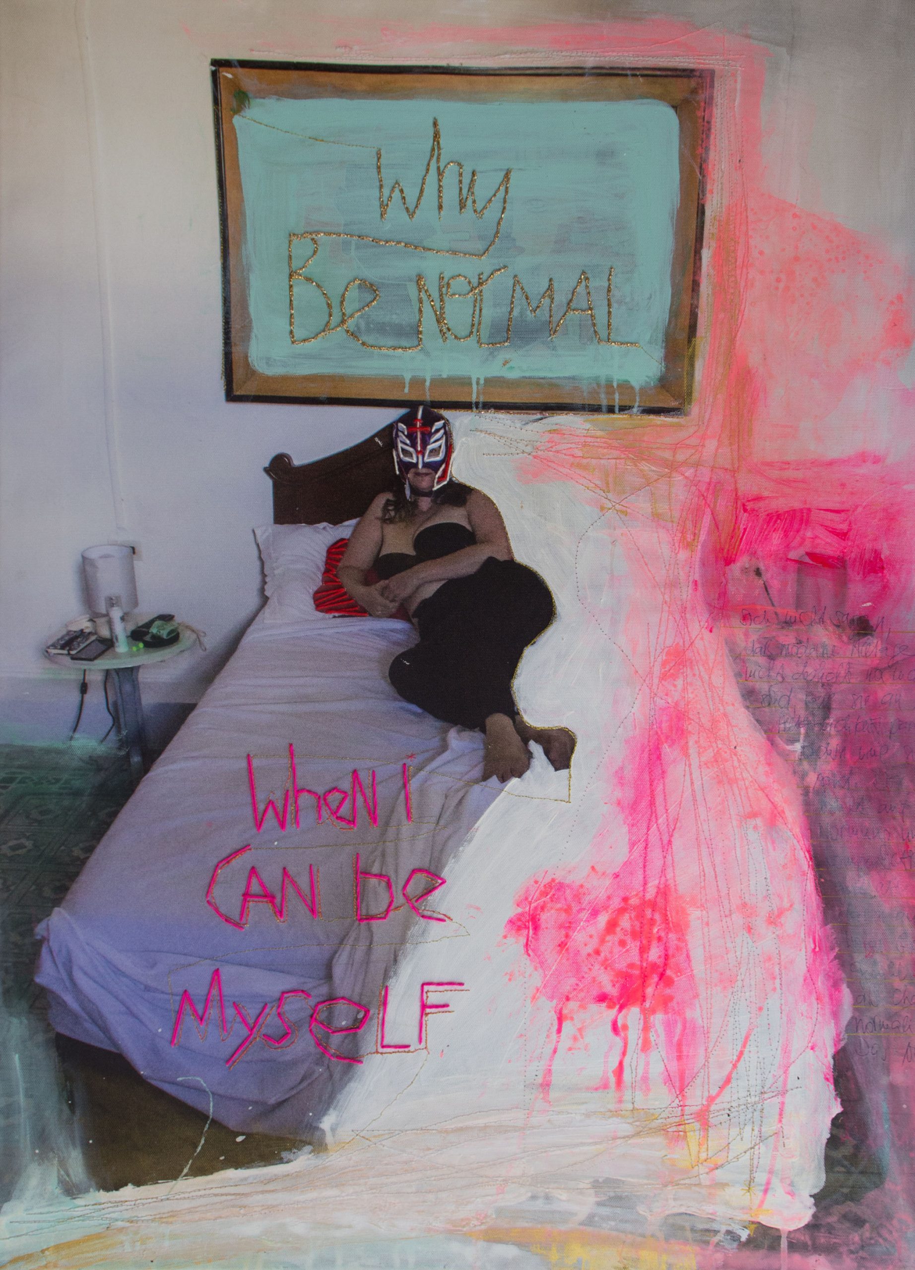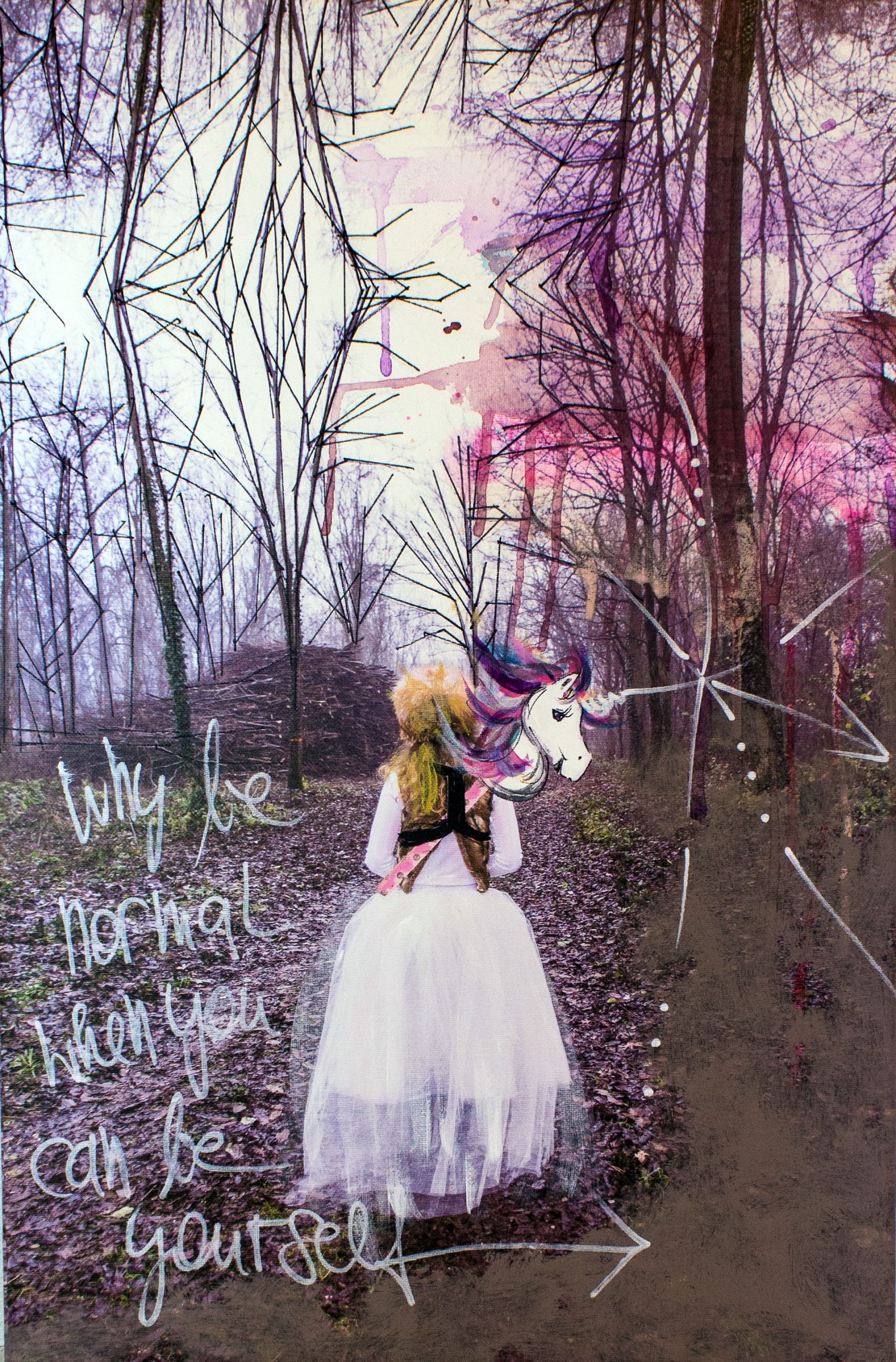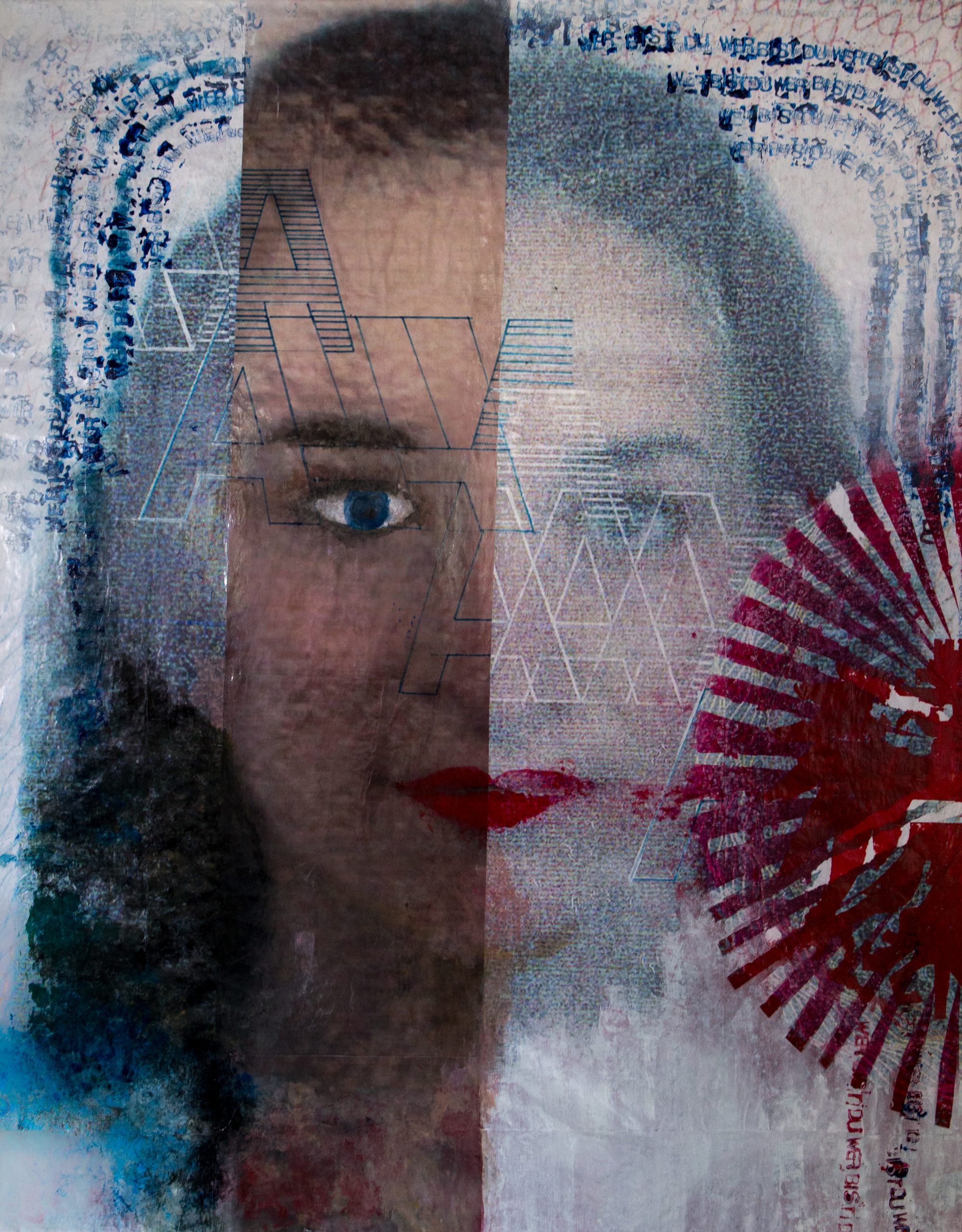 These selected works show images of strong women and men who go their own way, apart from all pigeonholes and stereotypes. A staged photography is always the canvas for this mixed media pieces. Those are worked on with colours and fabrics, as well as various sewing techniques and embroidery.