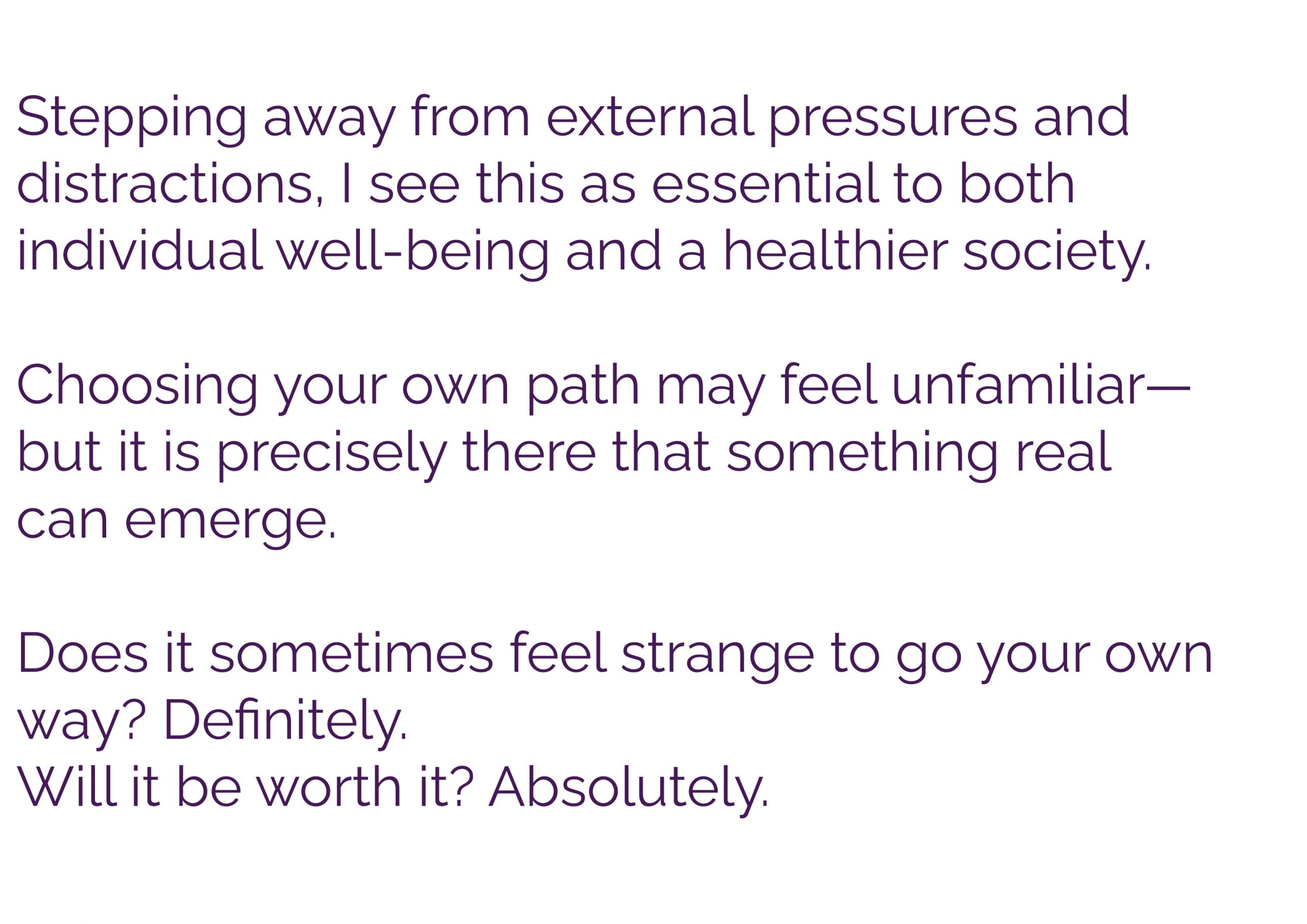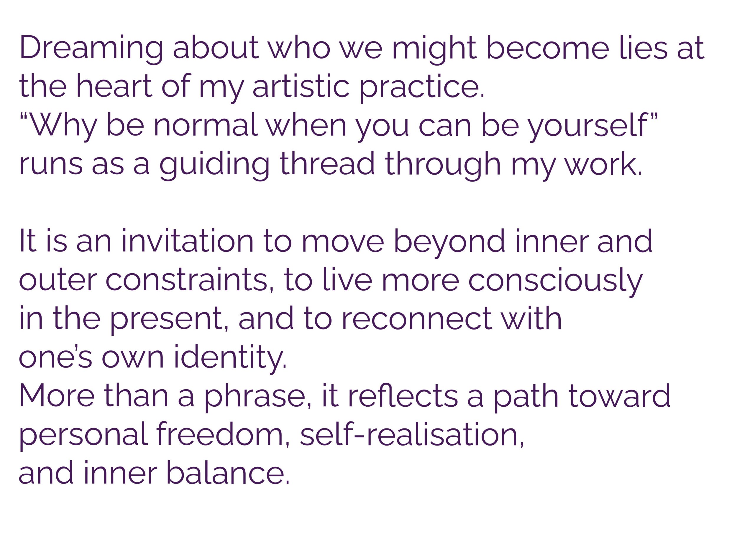 She sees her work as a stimulus to uncover one’s true self and to venture into a life beyond preconceived ideas.